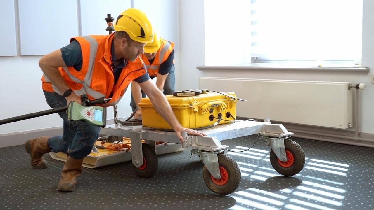 Zijn collega Patrick Stoutjesdijk, adviseur geofysisch onderzoek, vertelt verder: “De grondradar (scanapparaat) voert een meting uit waarbij, voor zover mogelijk, door de wanden en vloeren wordt gekeken. Op deze manier kun je via de scans zien of er verstoringen in de bodem zijn. En daar zou je uit kunnen afleiden of er meer dan zand ligt. Ook wordt deze informatie naast het historische materiaal gelegd.”