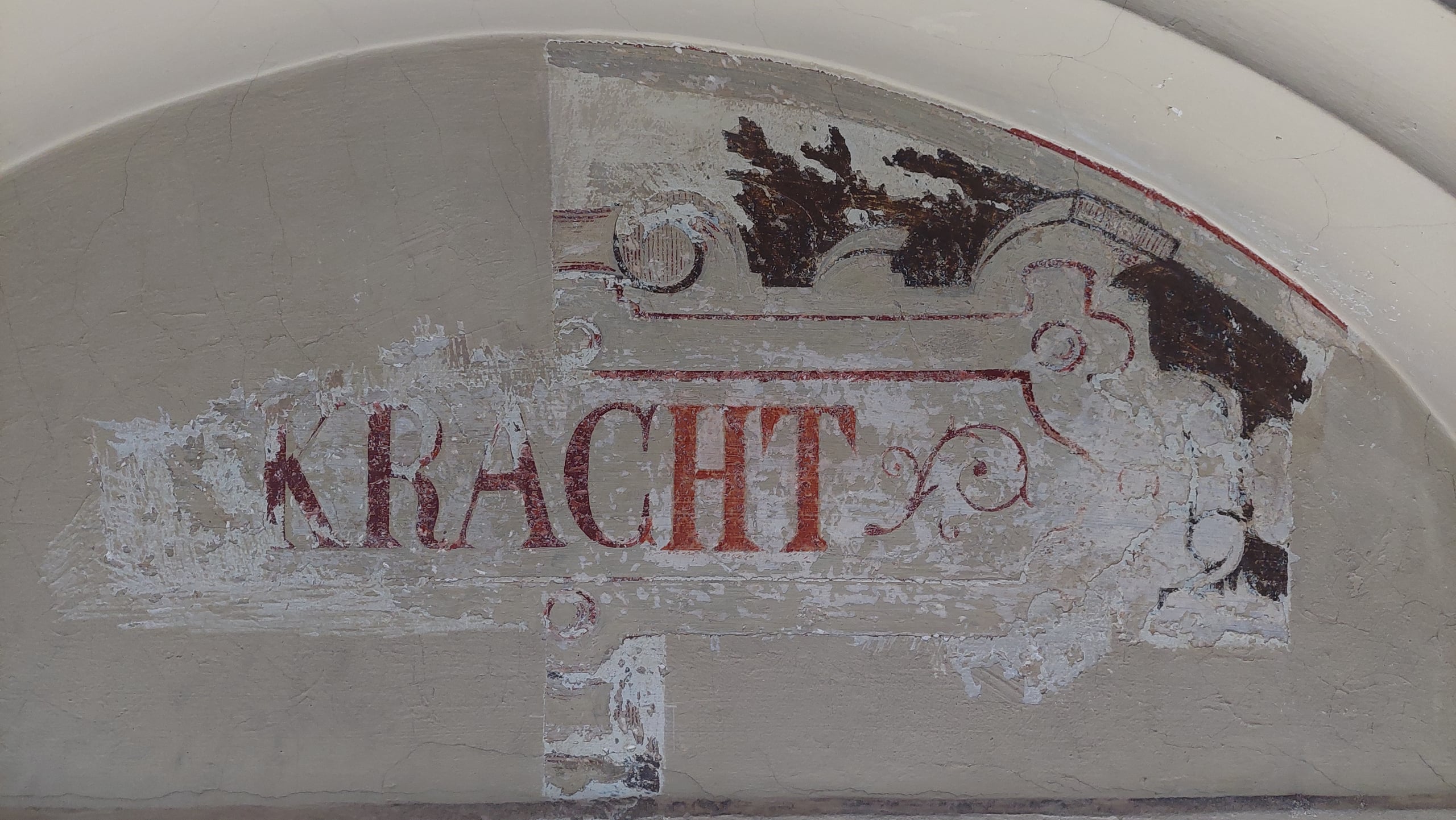 Maar er was meer. Want onder die blauwe kleur zaten prachtige schilderingen verstopt, zoals turquoise motiefjes met strepen en stippen, groene krullen en rode bloemen. En boven de ramen vond Judith twee cartouches – geschilderde schilden – met de woorden ‘kracht’ en ‘geloof’. Christelijke deugden die volgens Carien niet alleen goed tot hun recht kwamen in een gebouw van Justitie, maar ook corresponderen met beelden buiten het gebouw: ‘Je ziet echt dat Peters het als één geheel heeft ontworpen. Het is zonde dat dat met de tijd verloren is gegaan.’