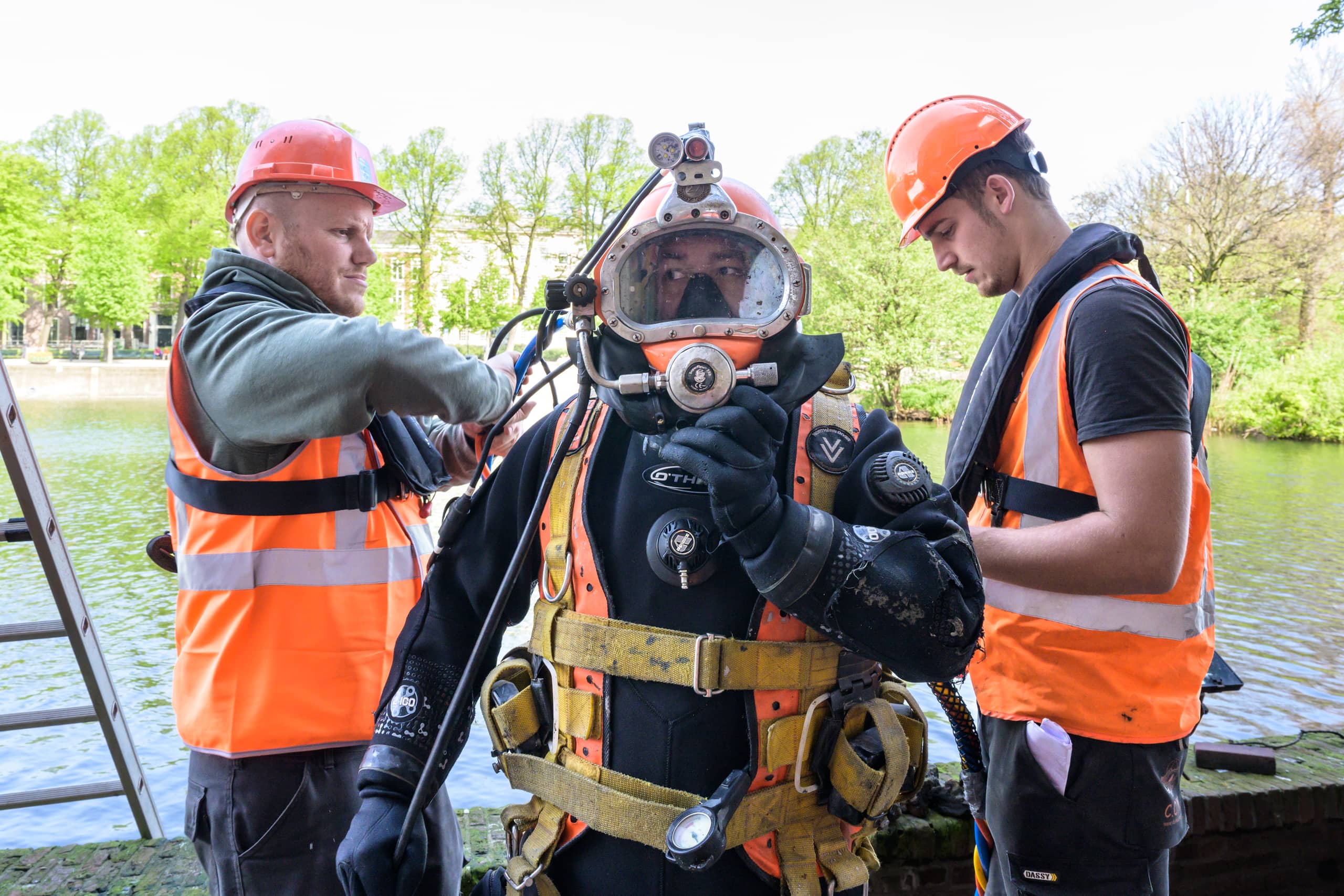 Duikers op onderzoek in de Hofvijver