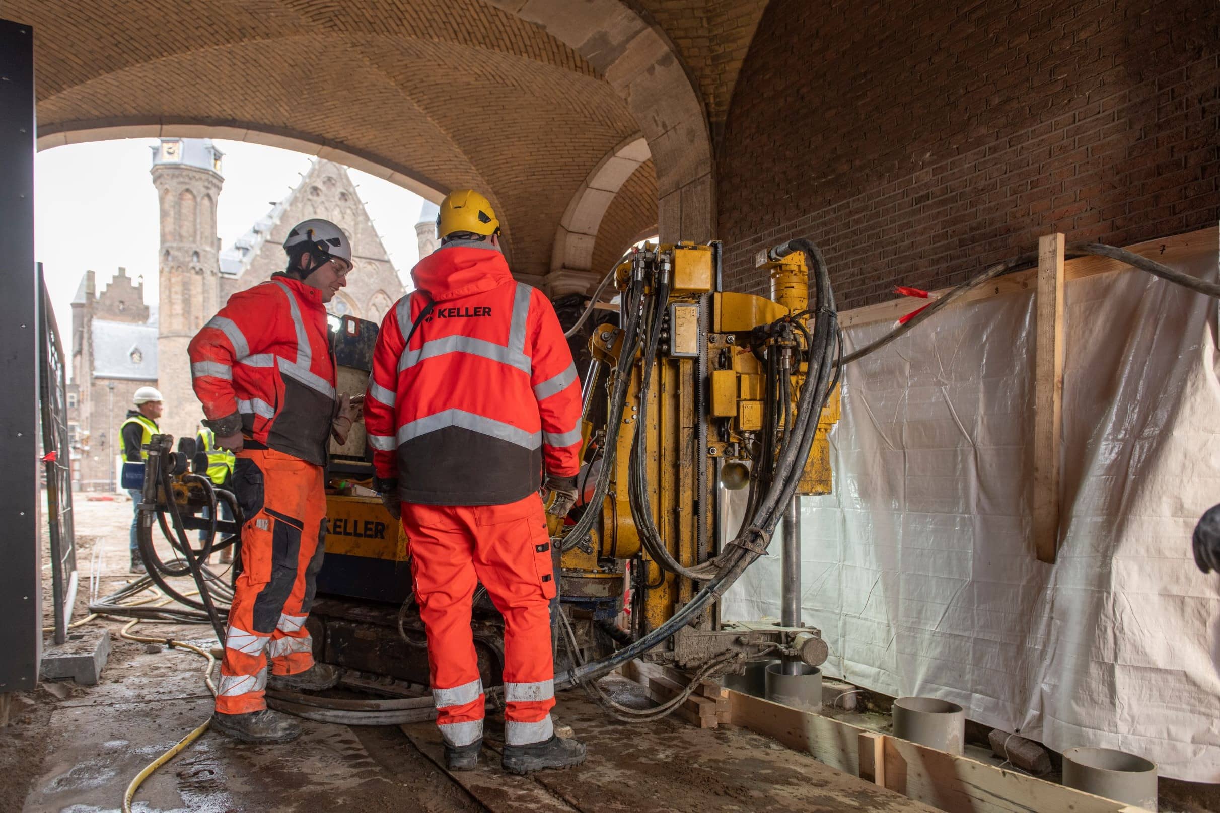 Om de doorgang onder de Stadhouderspoort geschikt te maken voor vrachtverkeer is de monumentale poort uitgegraven. Maar allereerst moest de fundering versterkt worden. Dat gebeurde door ‘jetgrouten'.